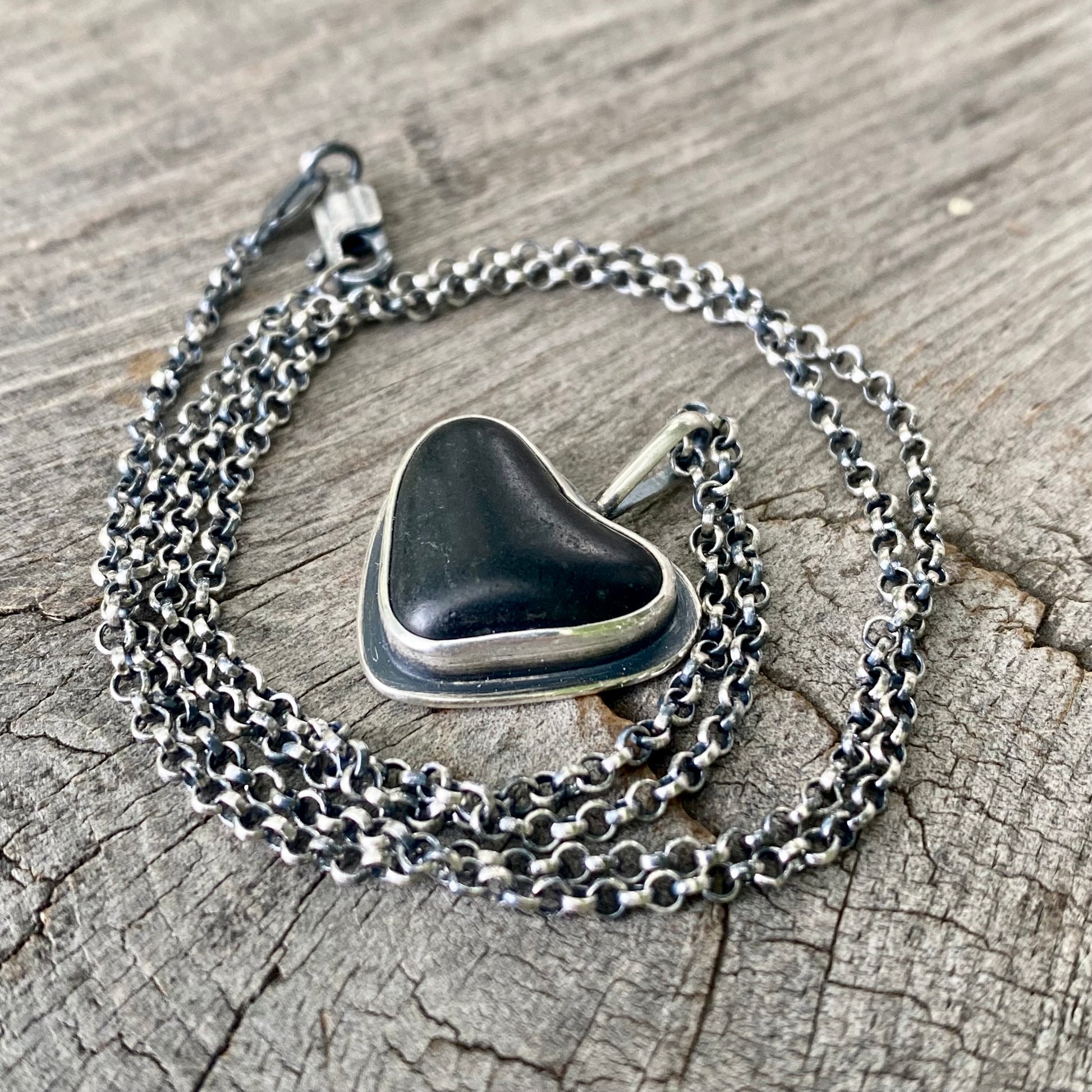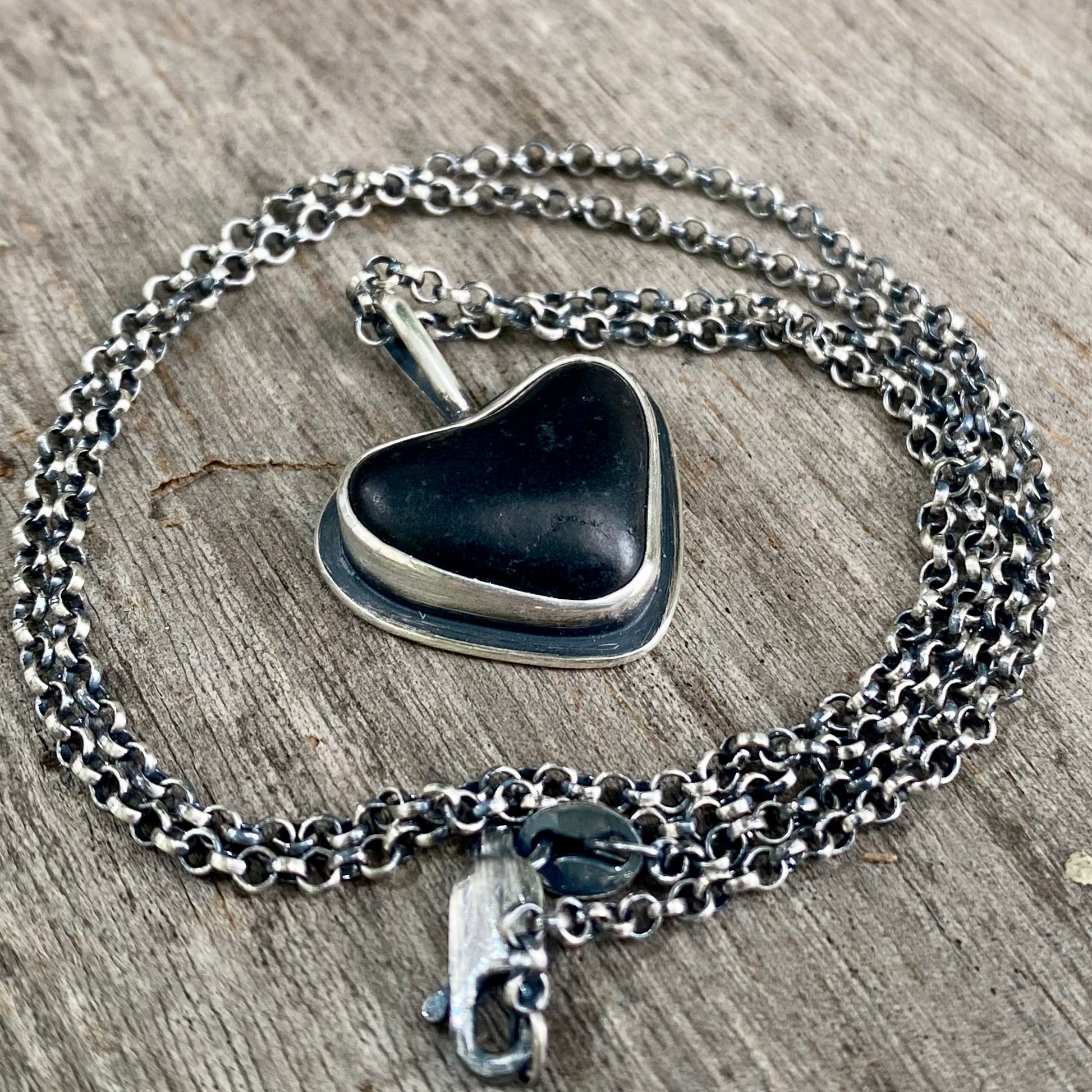 Reserved for J - Do Not Purchase Black Basalt Vancouver Island Beach Stone Heart Pendant