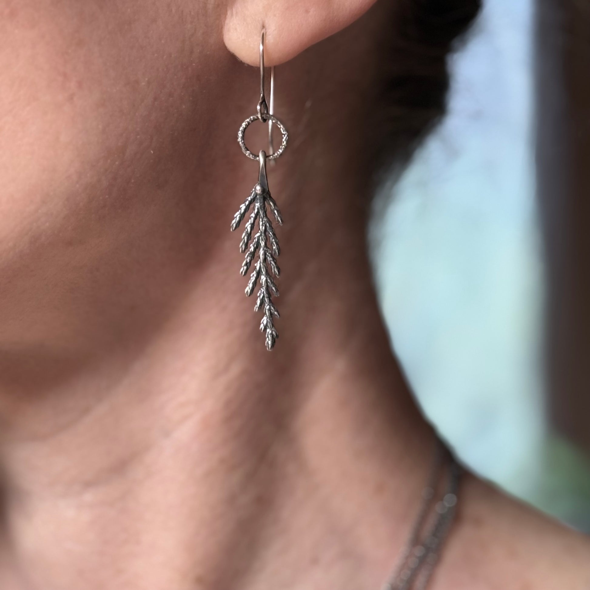 Hand-Crafted Cedar Leaf Sterling Silver Dangles