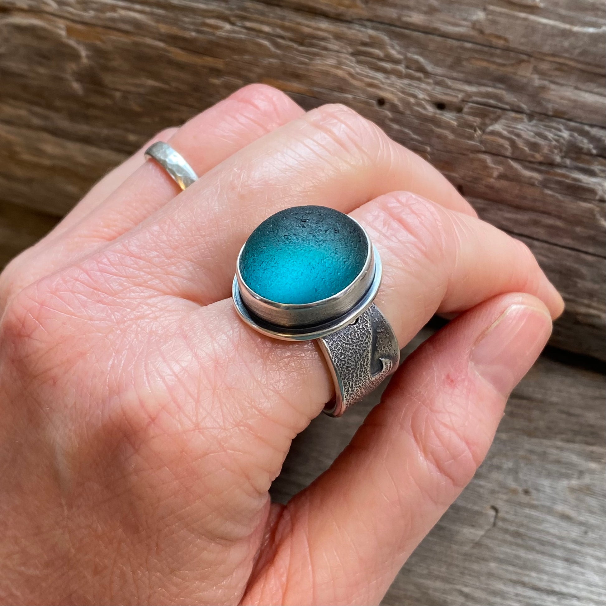 Changing Tides Genuine Sea Glass Ring (Wide Band)
