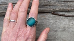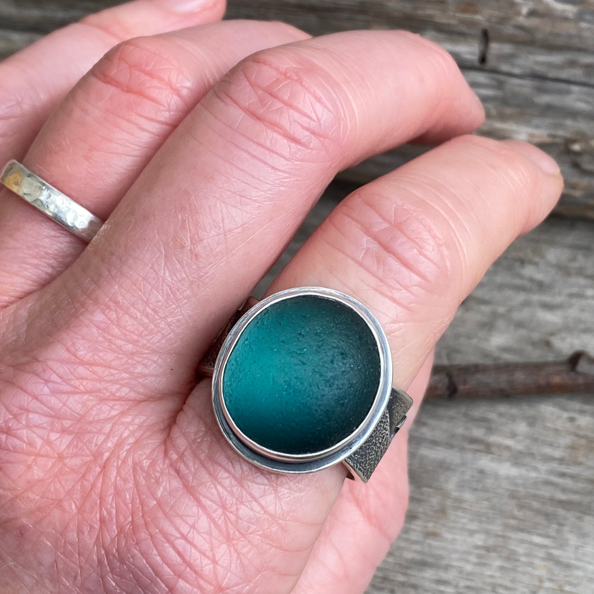 This one-of-a-kind dark teal blue sea glass was sourced from a reputable beach comber in England. I have called this ring "The Changing Tides Ring", to wear as a reminder of the beautiful ocean and the hope ahead that things will not always be as they are.  The sea glass appears dark but has a beautiful glow in the sunlight, a reminder that there is light in the darkness.