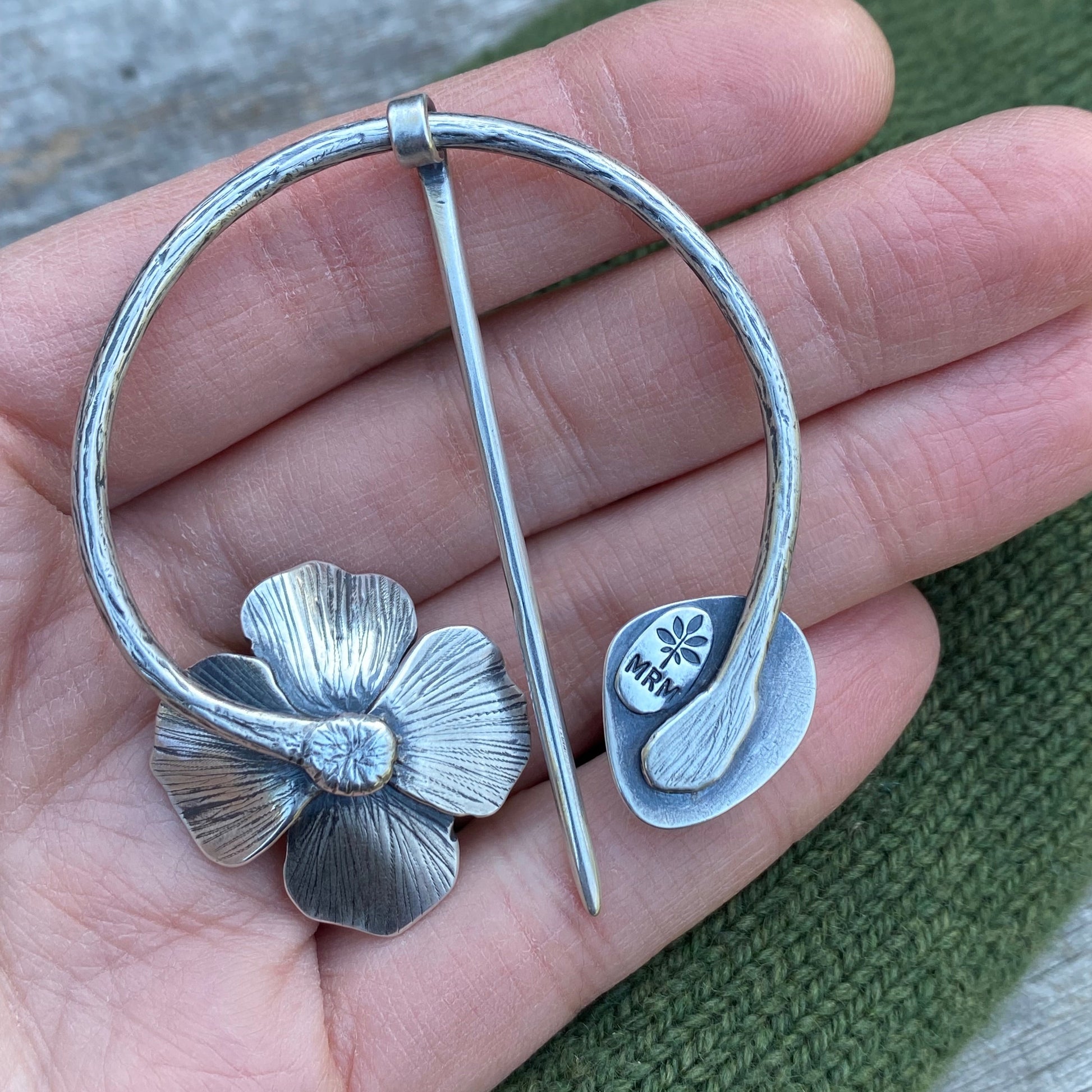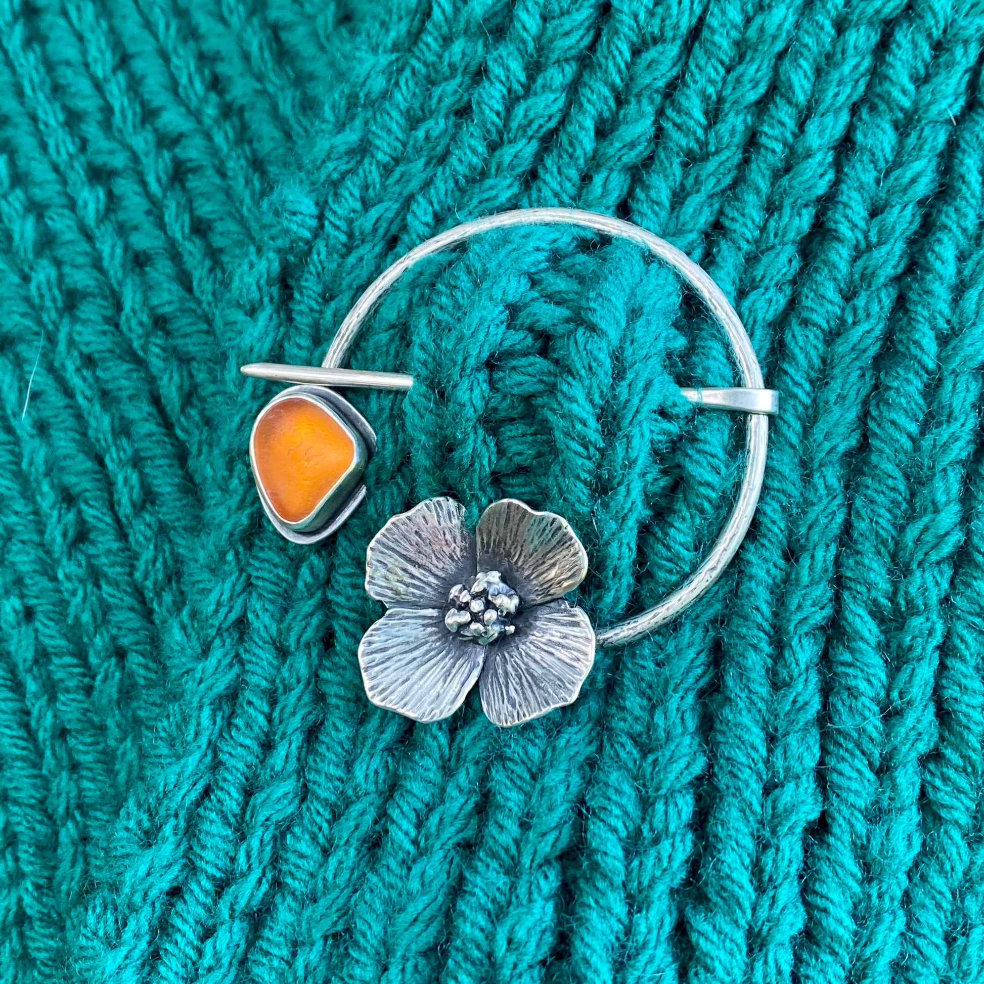 Where I lived on Vancouver Island, there was a hillside full of California poppies that I would always pass by on my way to the sea shore, a sight so beautiful it sticks in my mind. That is what I see in this beautiful hand crafted poppy brooch.