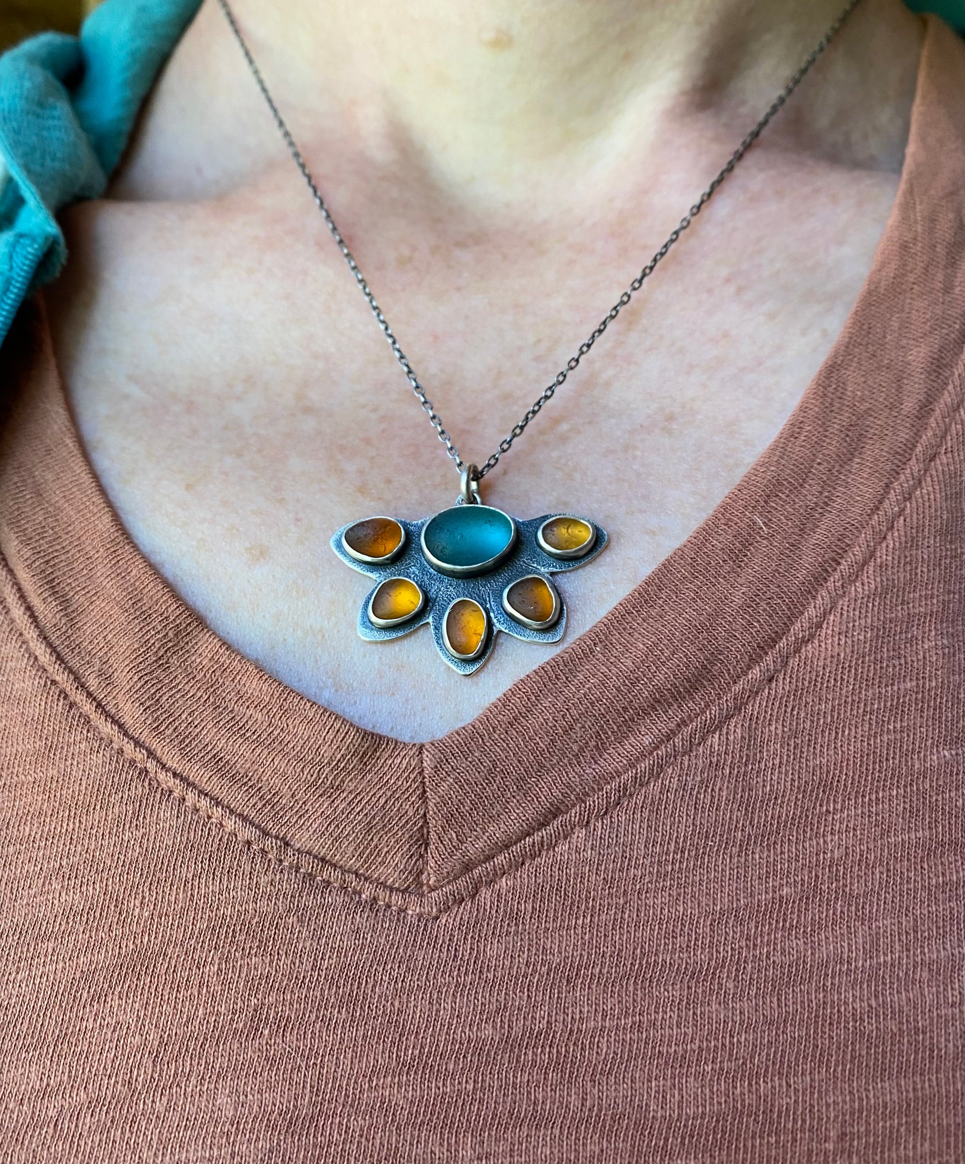 Pendant and 16" oxidized sterling silver elongated cable chain.