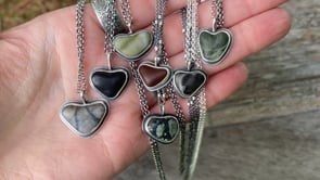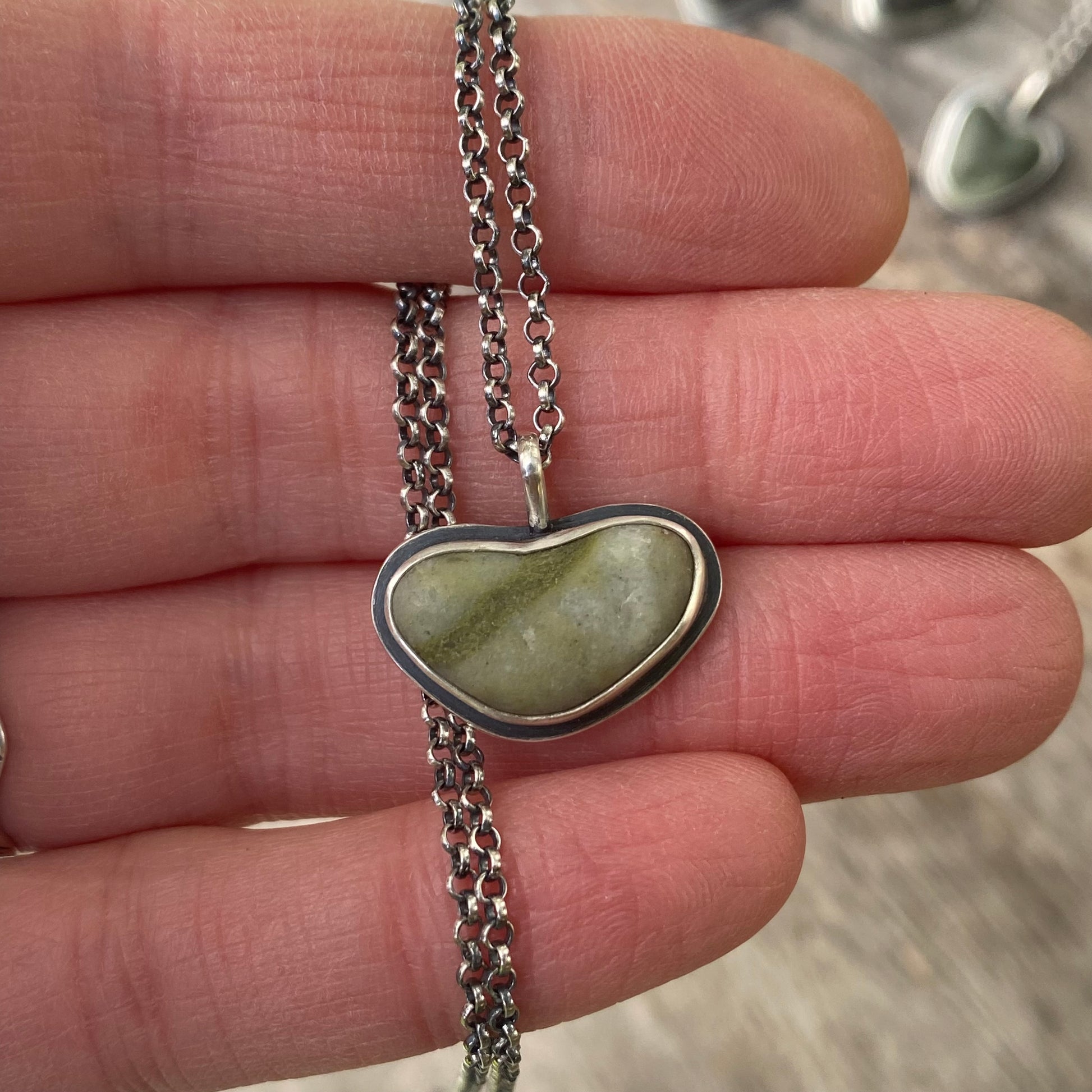 Striped Green Vancouver Island Beach Stone Heart Pendant