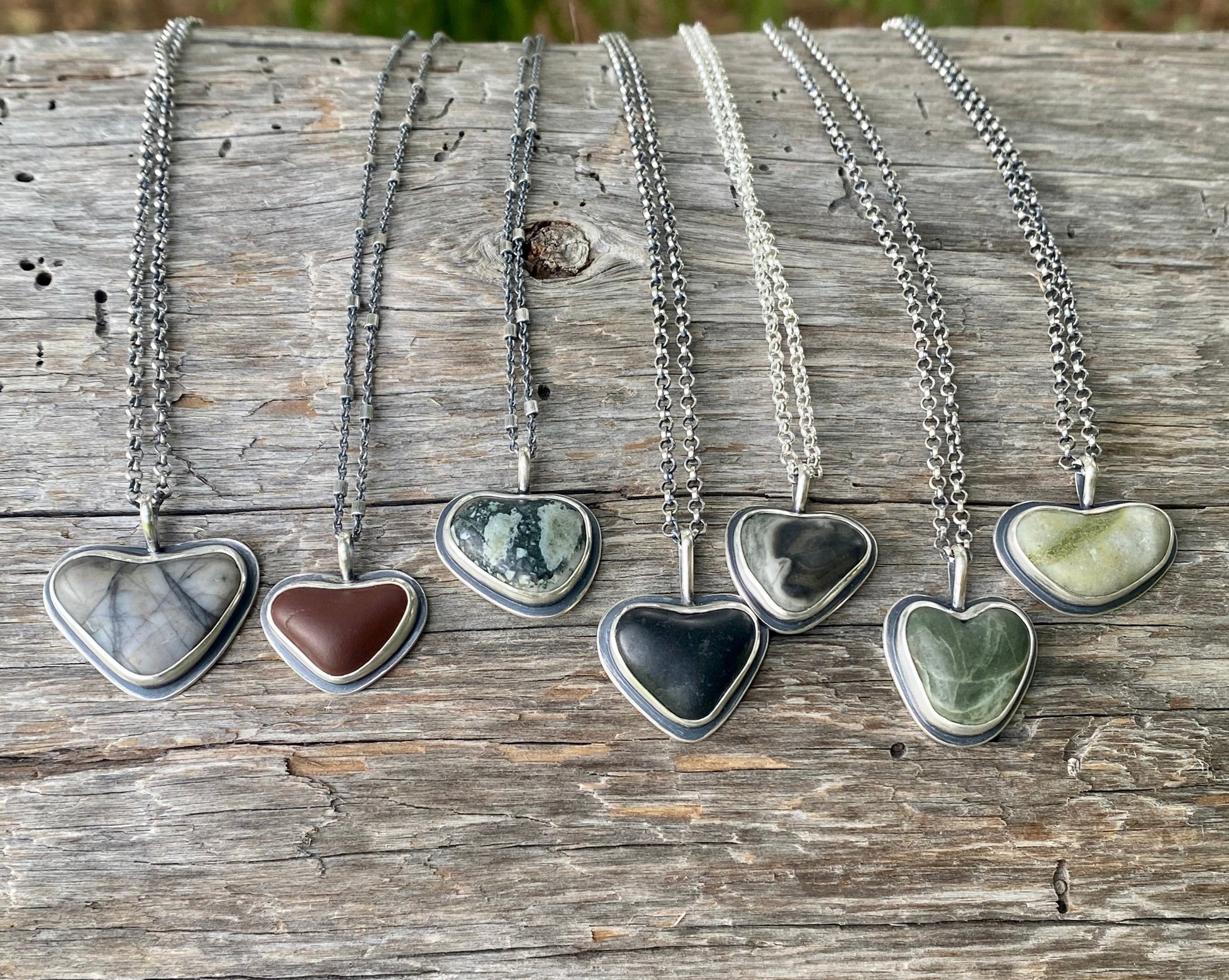 Dark Green Vancouver Island Beach Stone Heart Pendant