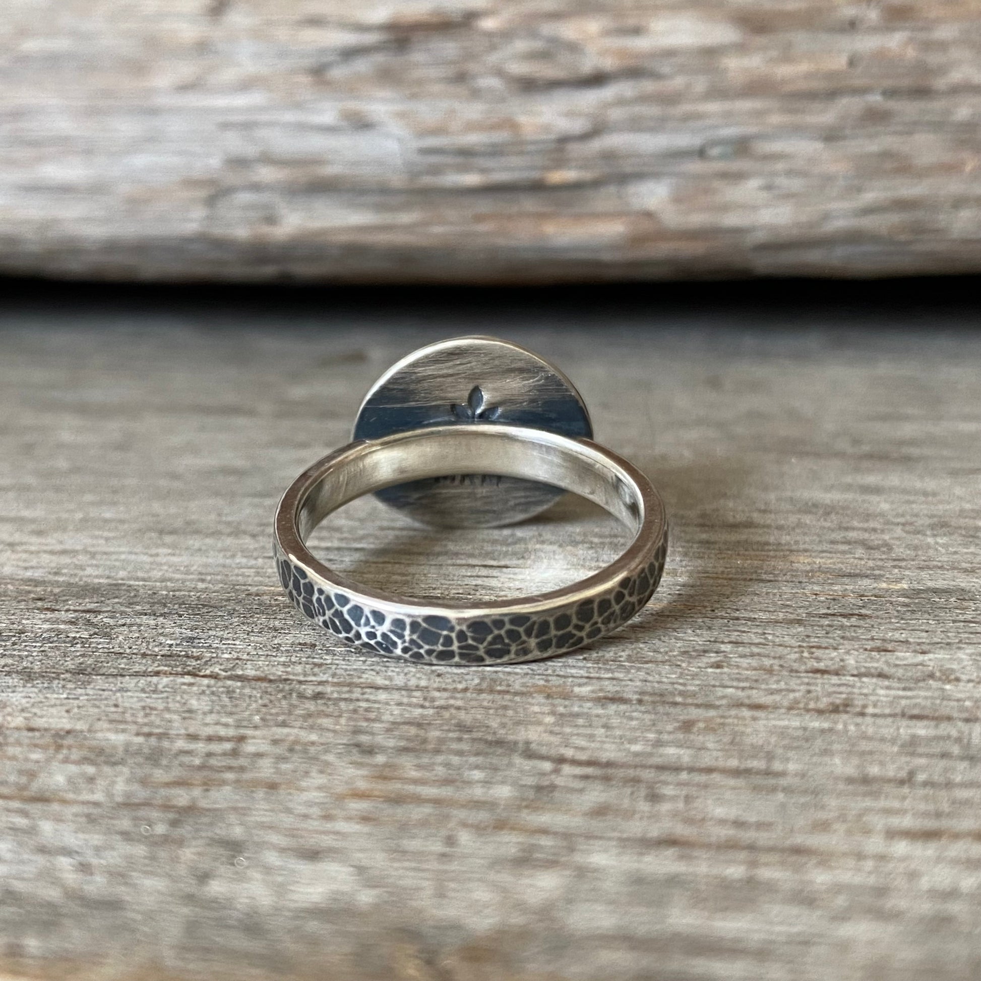Ring band: sturdy weight sterling silver 1.5mm thick x 3.5mm wide.