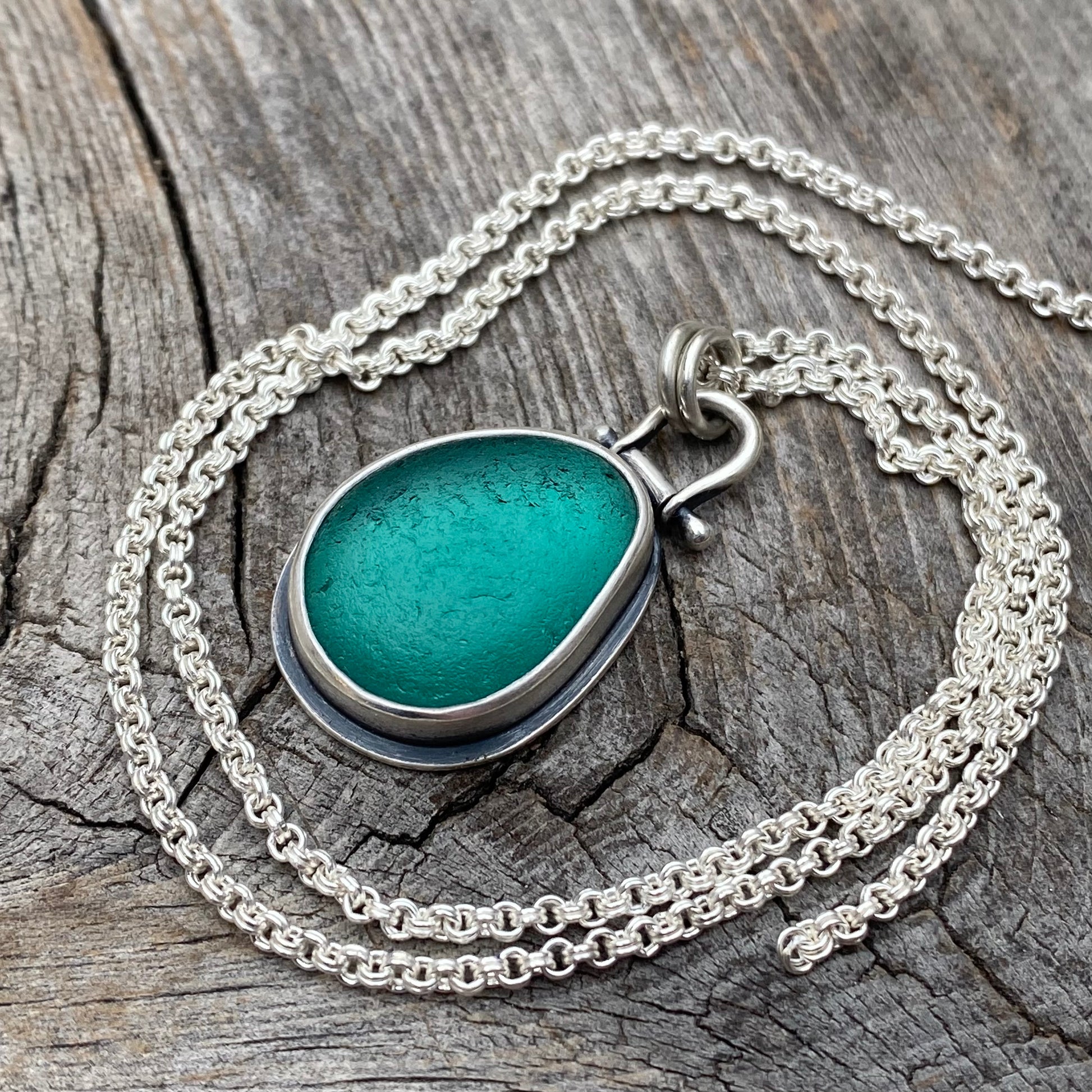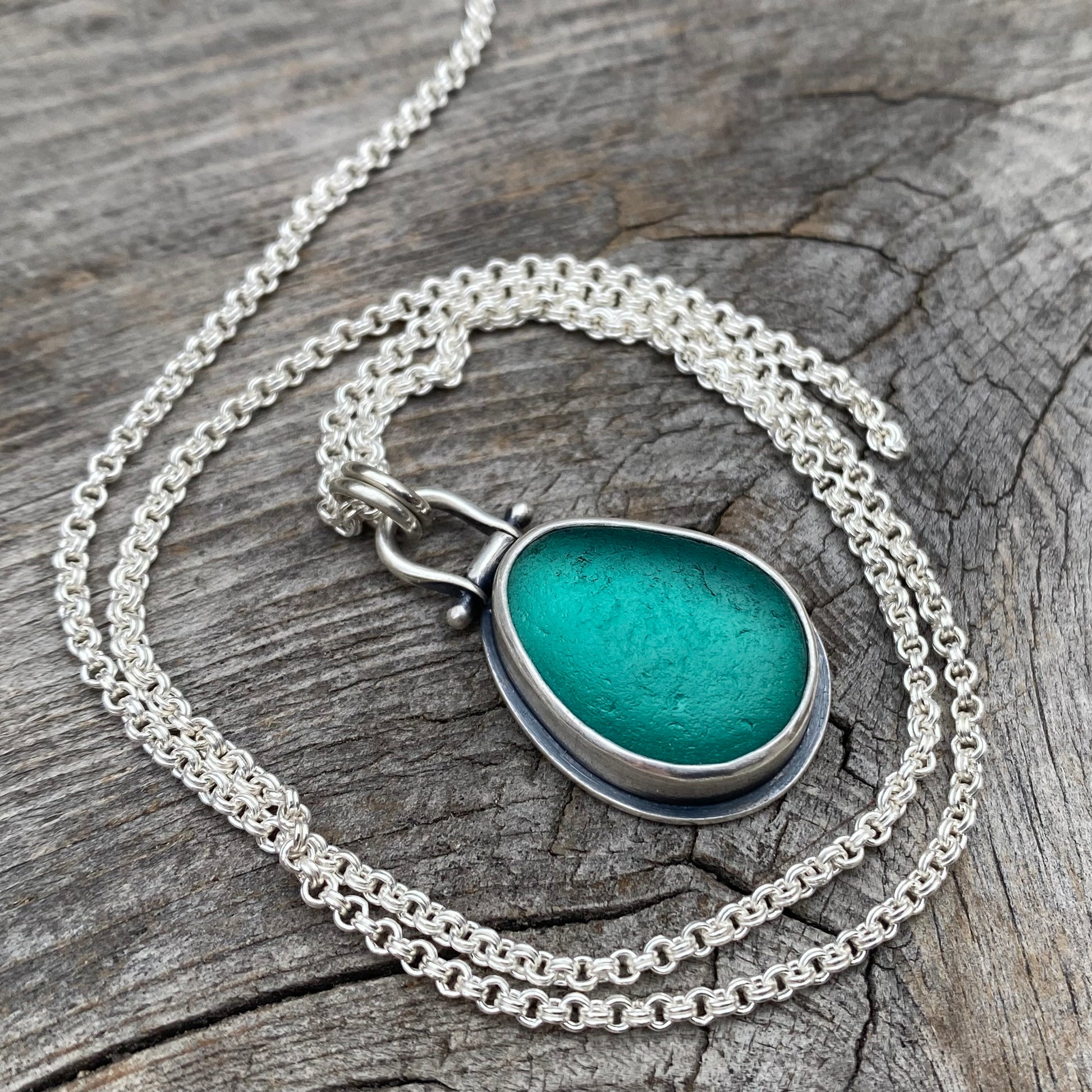 This elegant teal green pendant features a gorgeous piece of genuine Icelandic teal green sea glass which was found by a reputable beach comber in Iceland.