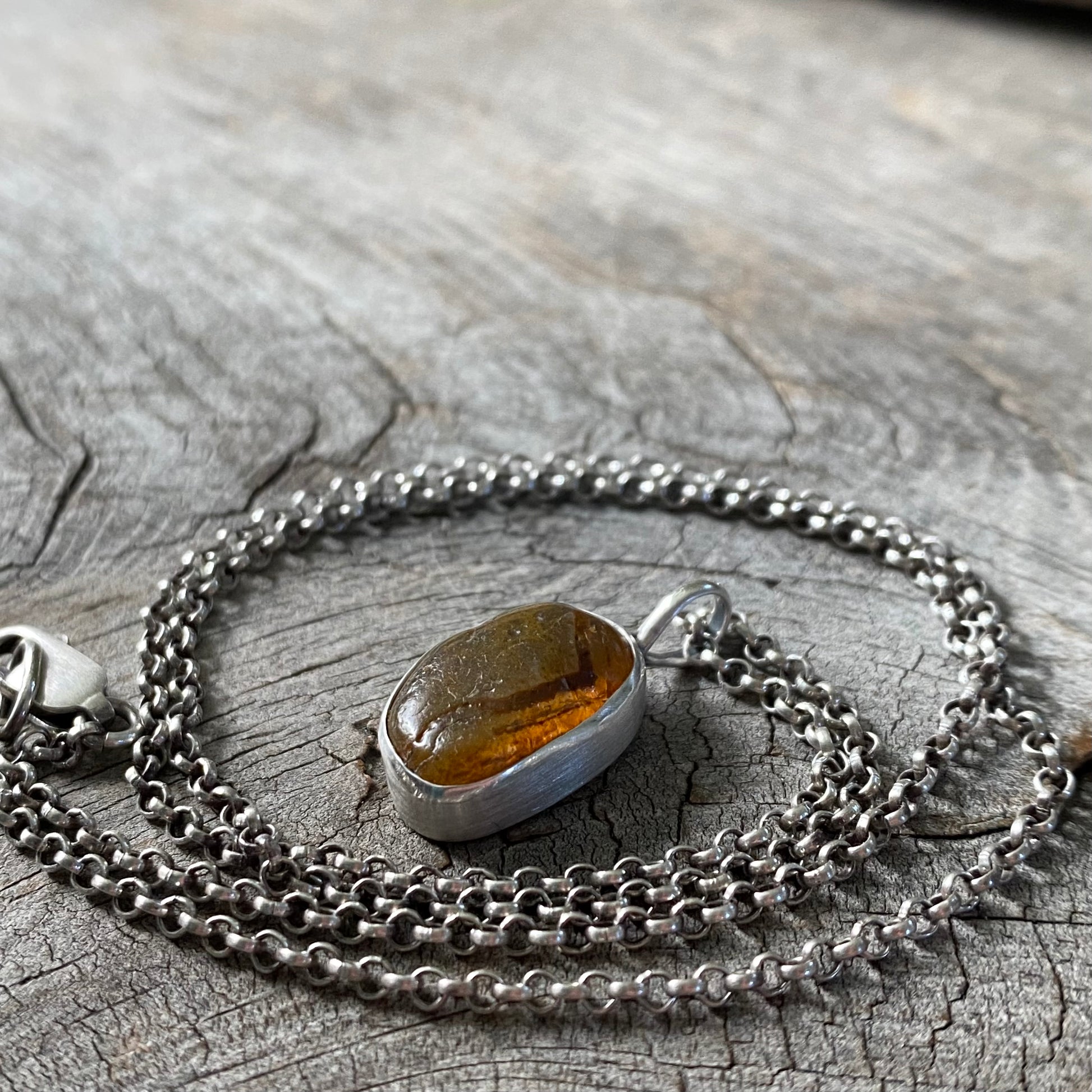 Encapsulated in a fine silver border, the sea glass rests on a sterling silver back plate that features my makers mark on the backside.