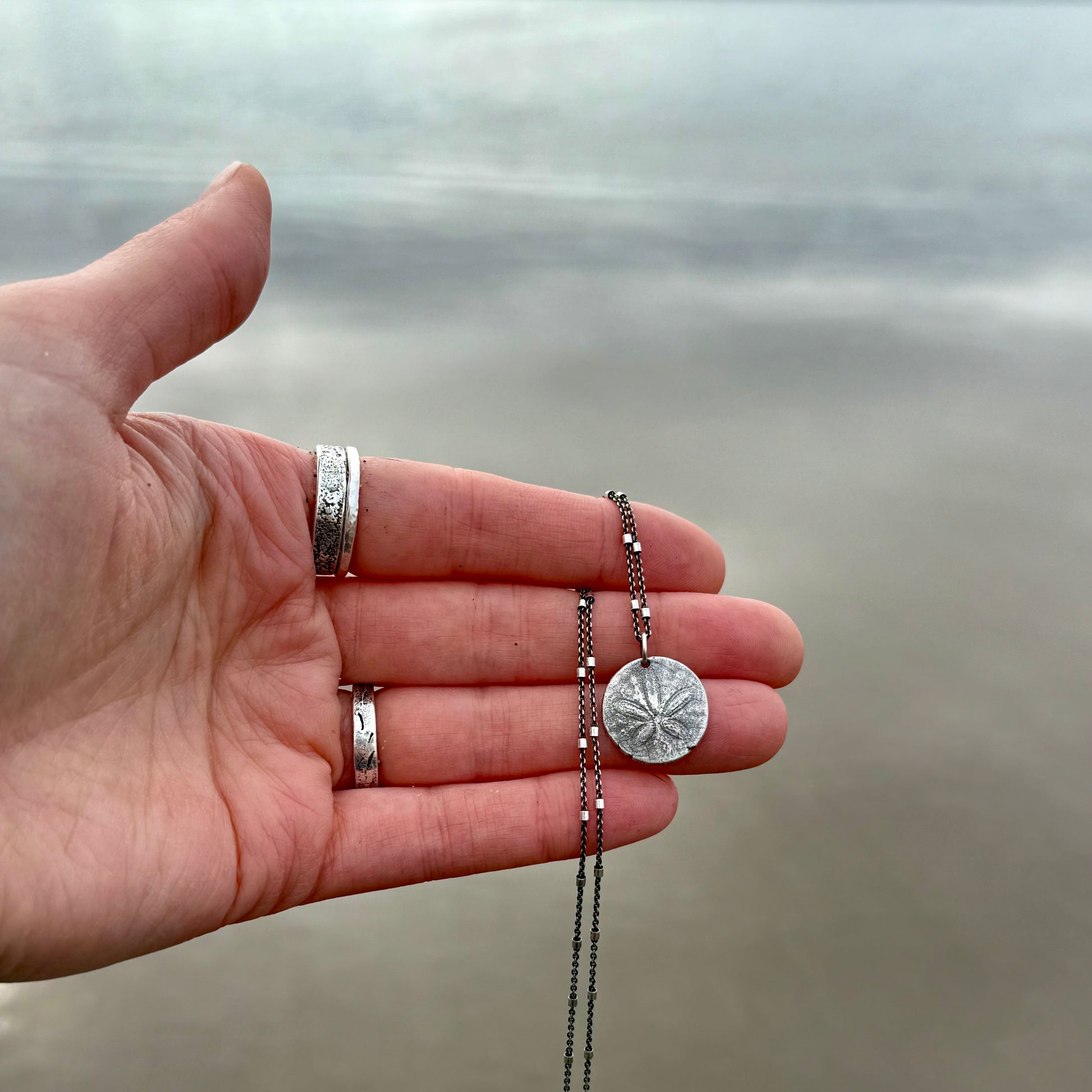 Despite its fragile beauty, the sand dollar is a surprising symbol of strength. In calm waters, it stands upright in the sand. When the tides shift, it adapts — lying flat, burrowing down, doing what it must to hold its ground.