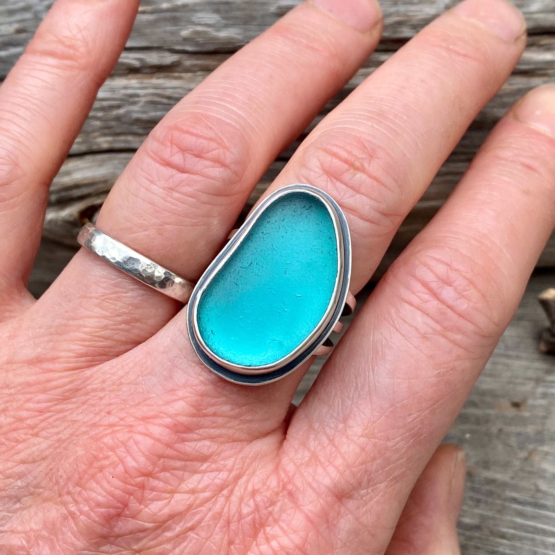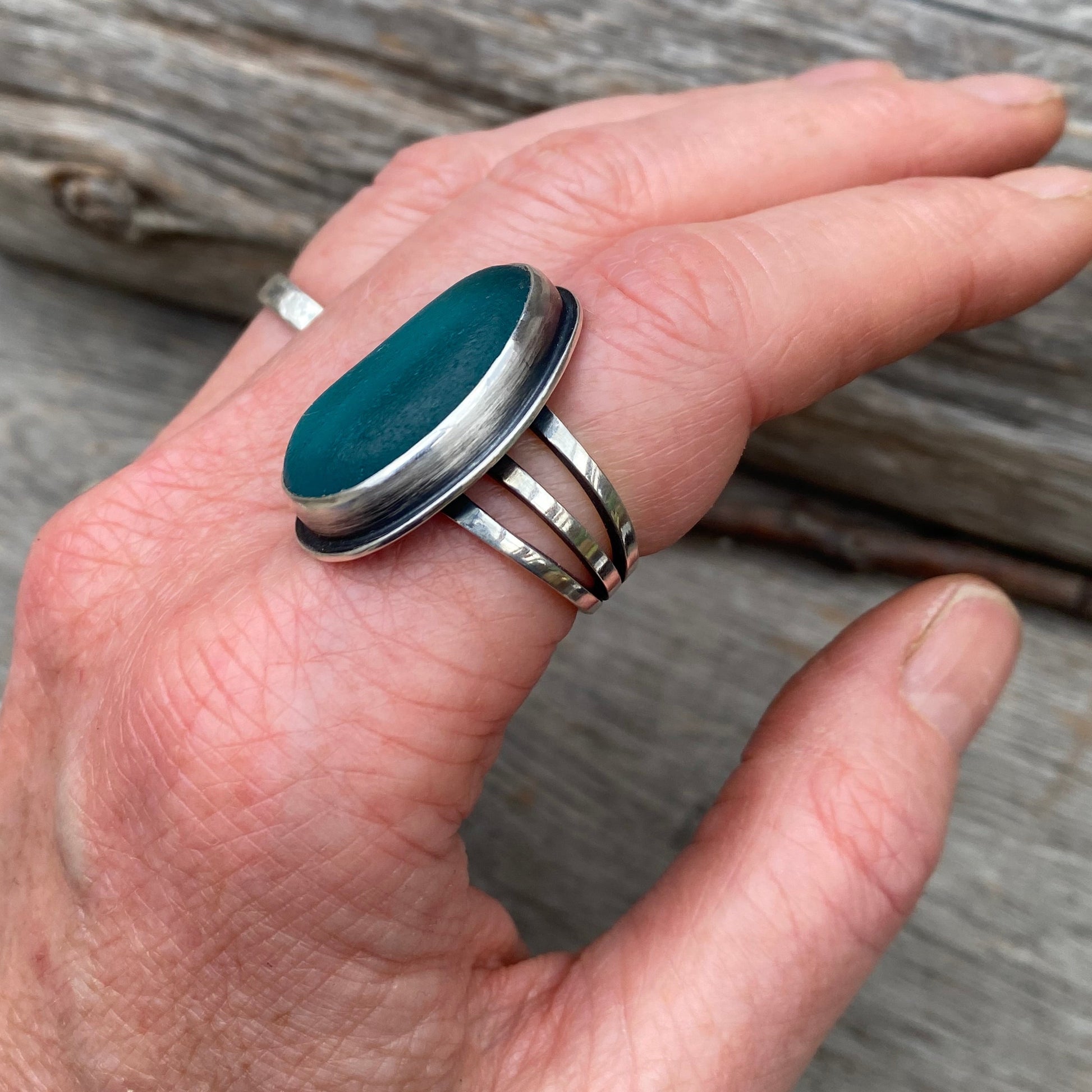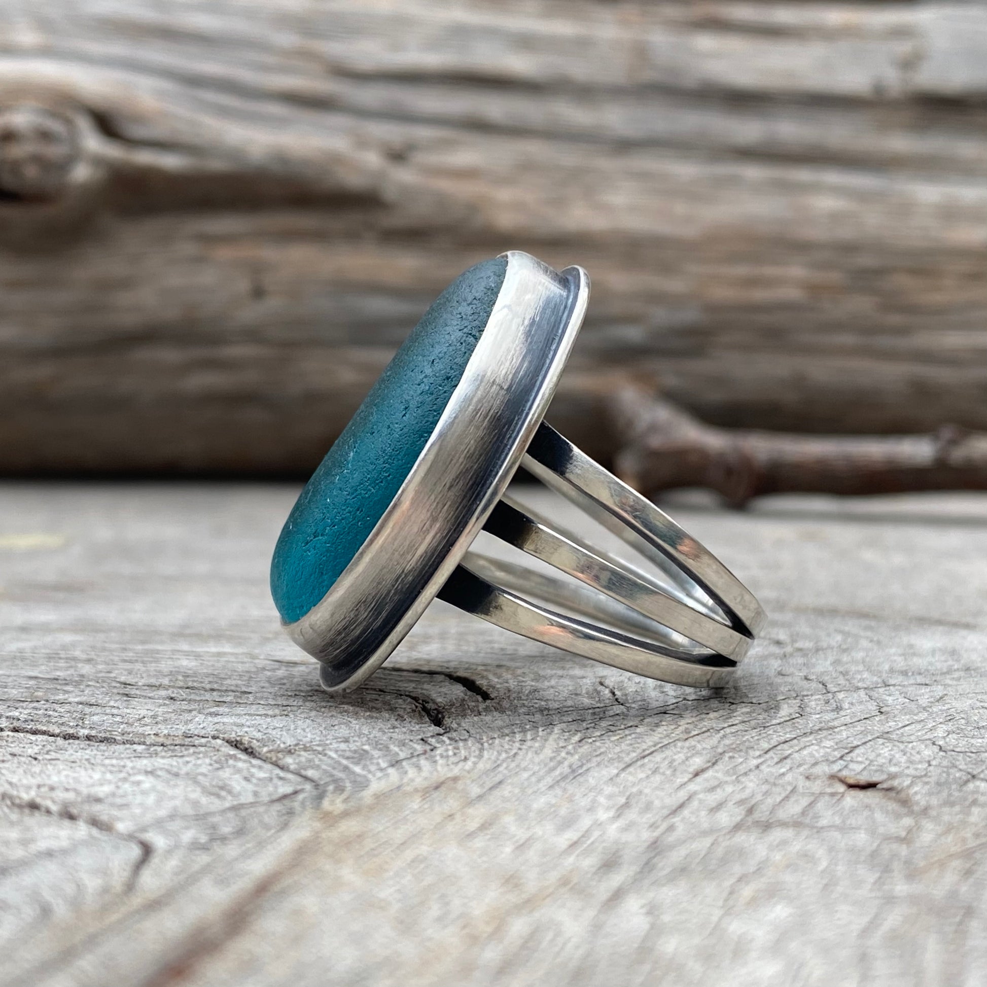 This ring won't go unnoticed when you wear it as the vibrant peacock blue glows in every type of lighting. I kept the setting simple as this piece deserved to be the center of attention.