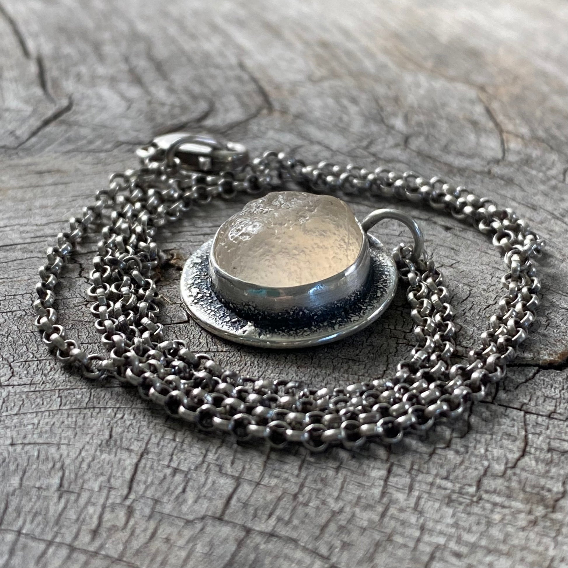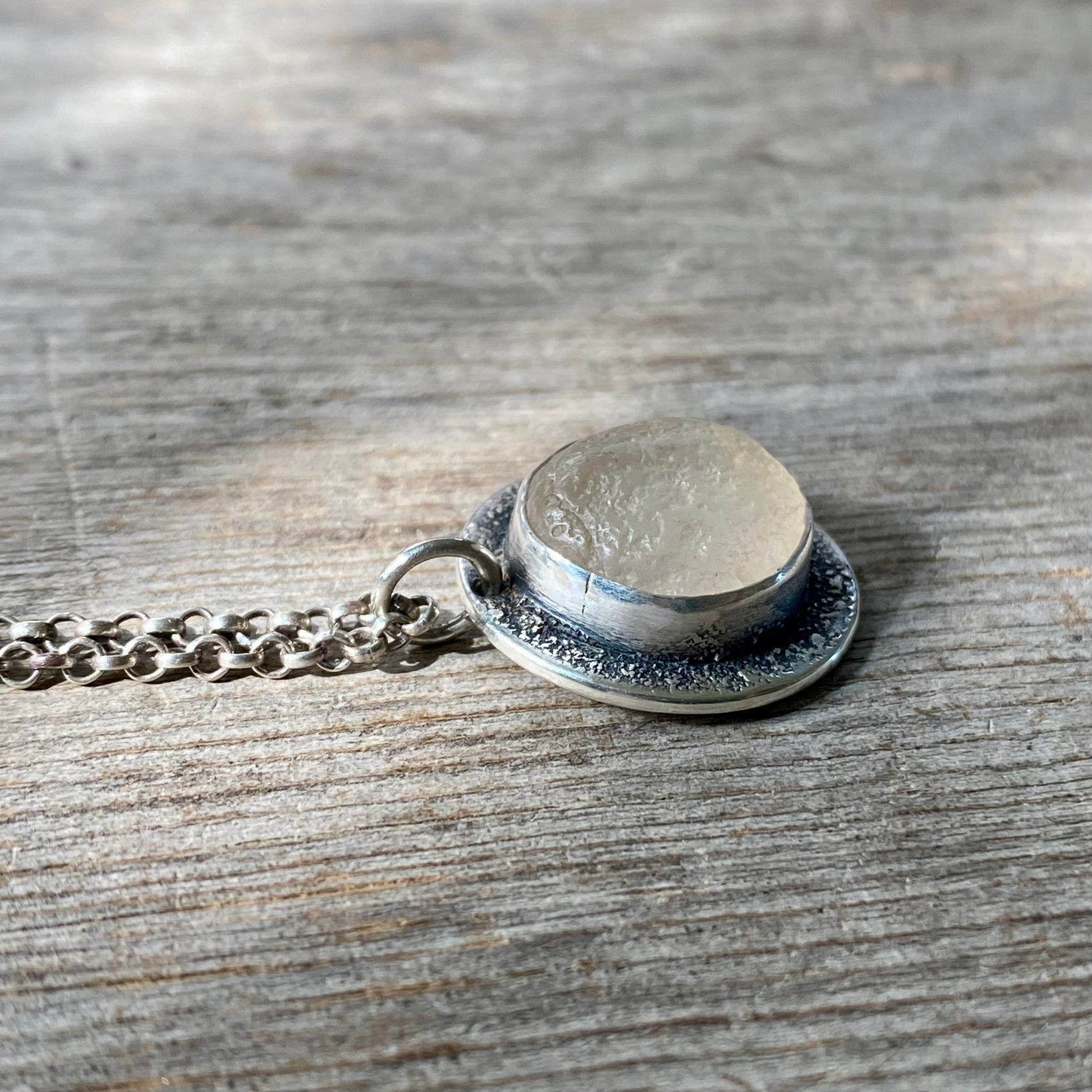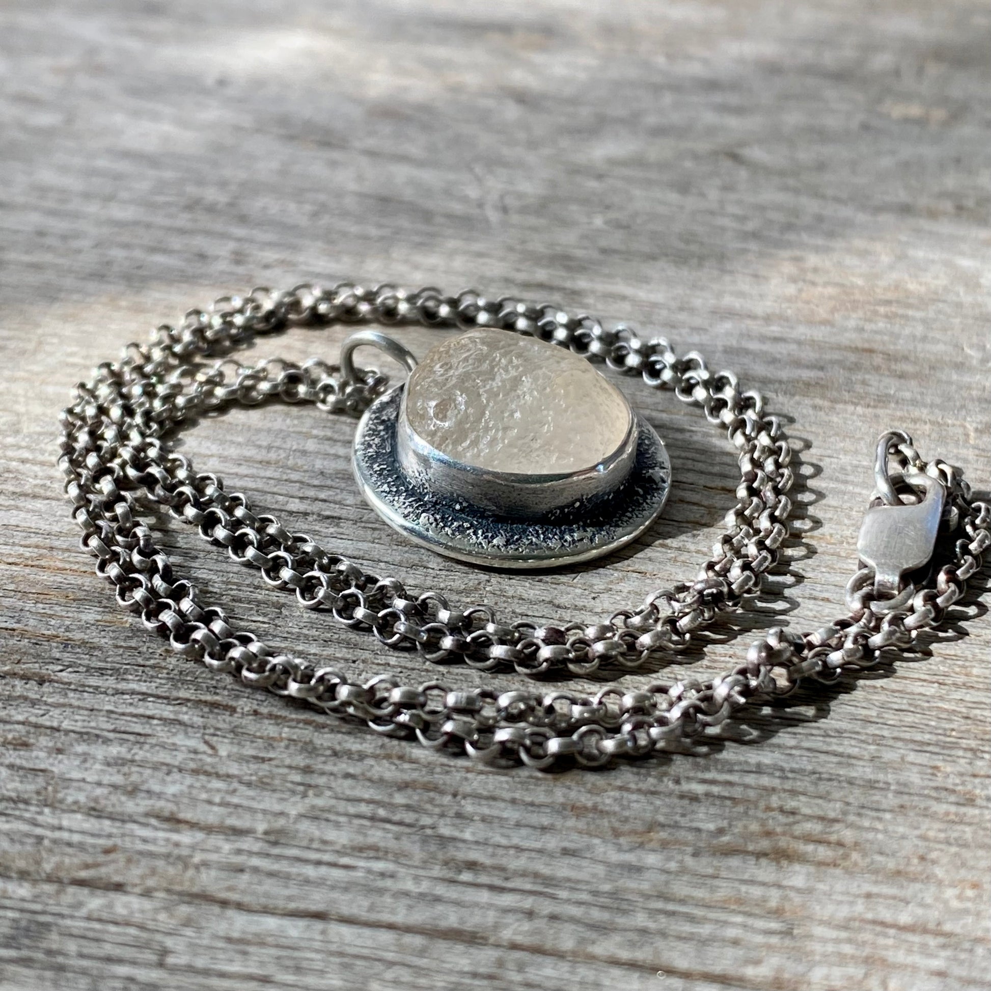 This pendant features a beautifully glowing Pacific Northwest ocean tumbled agate; wear it to keep you closer to the sea.