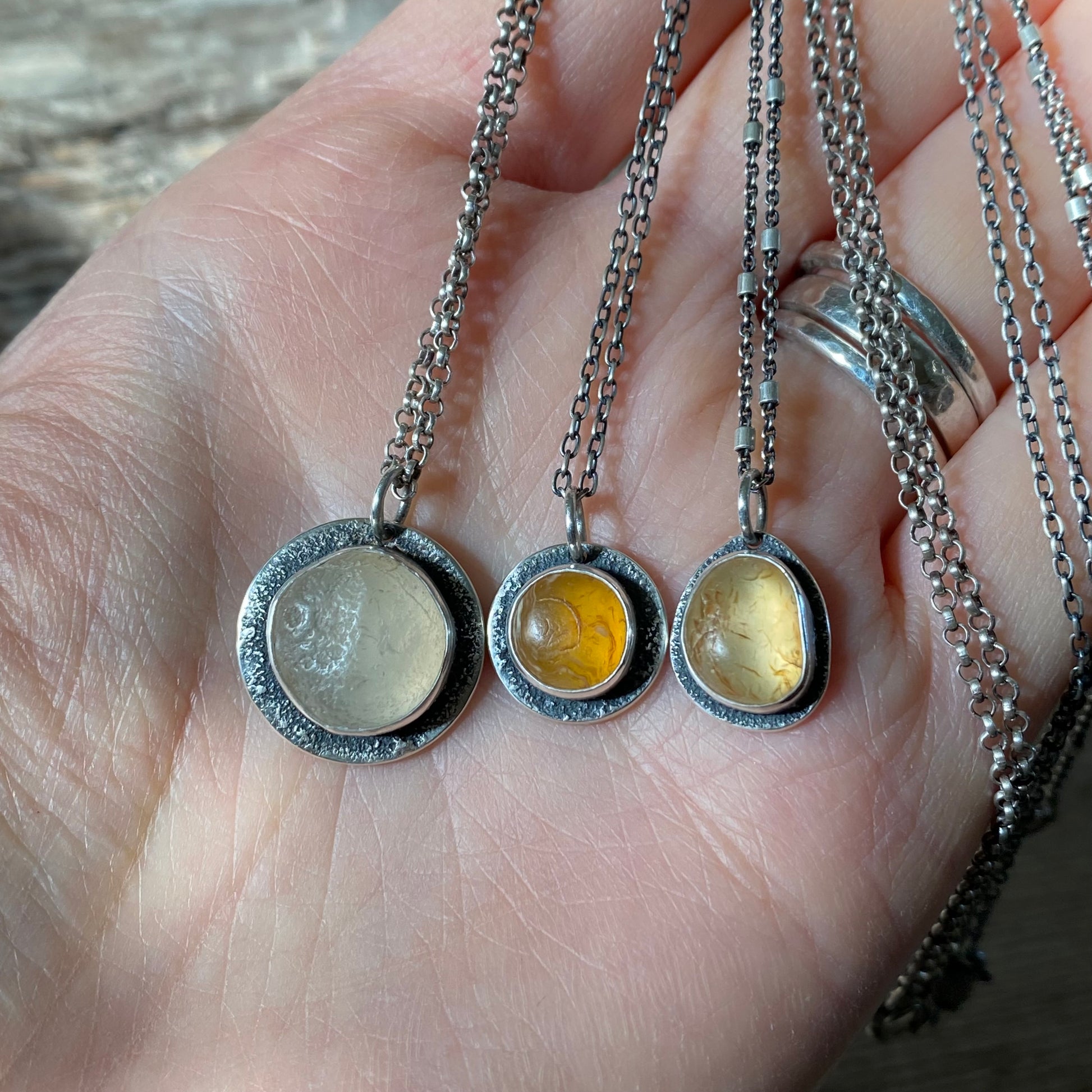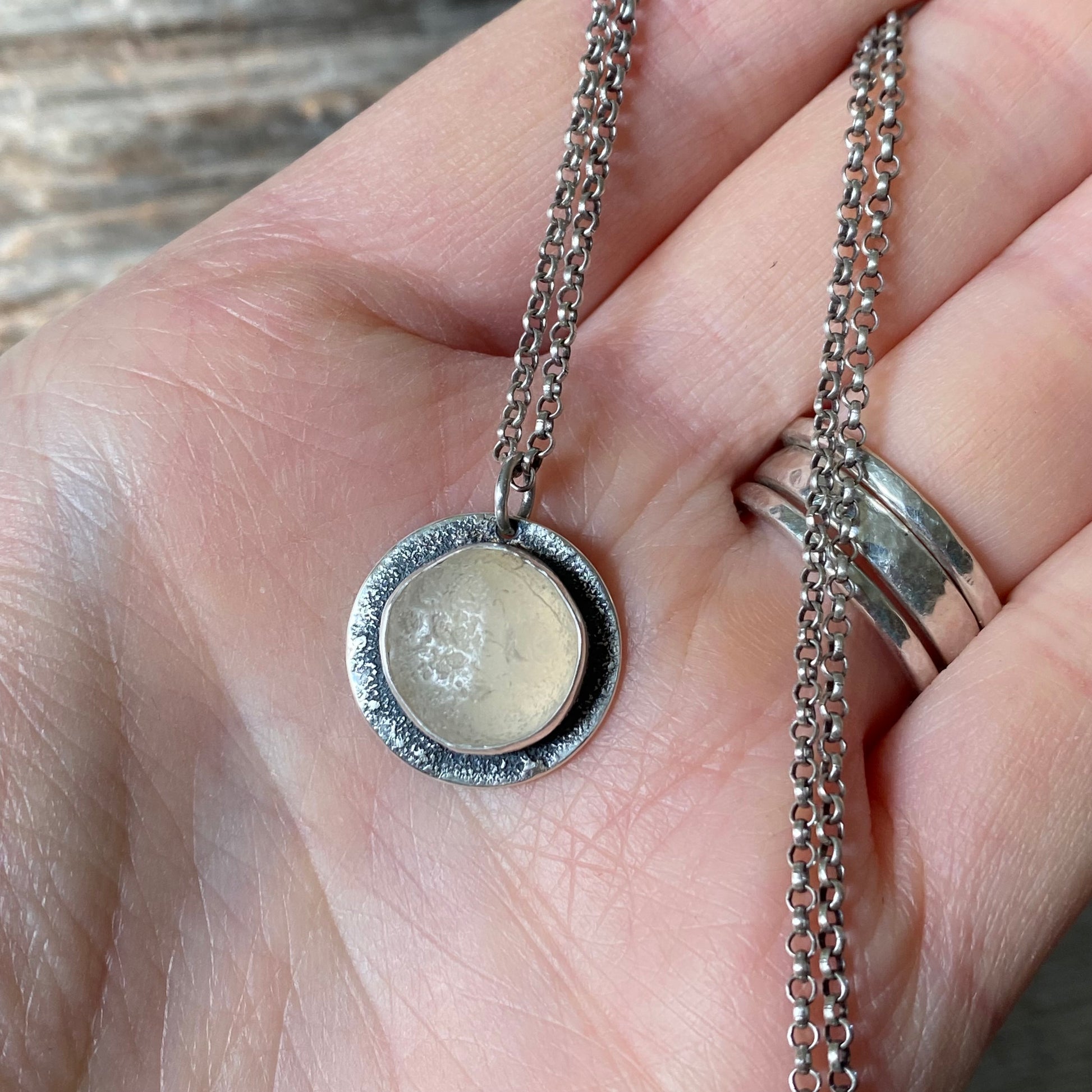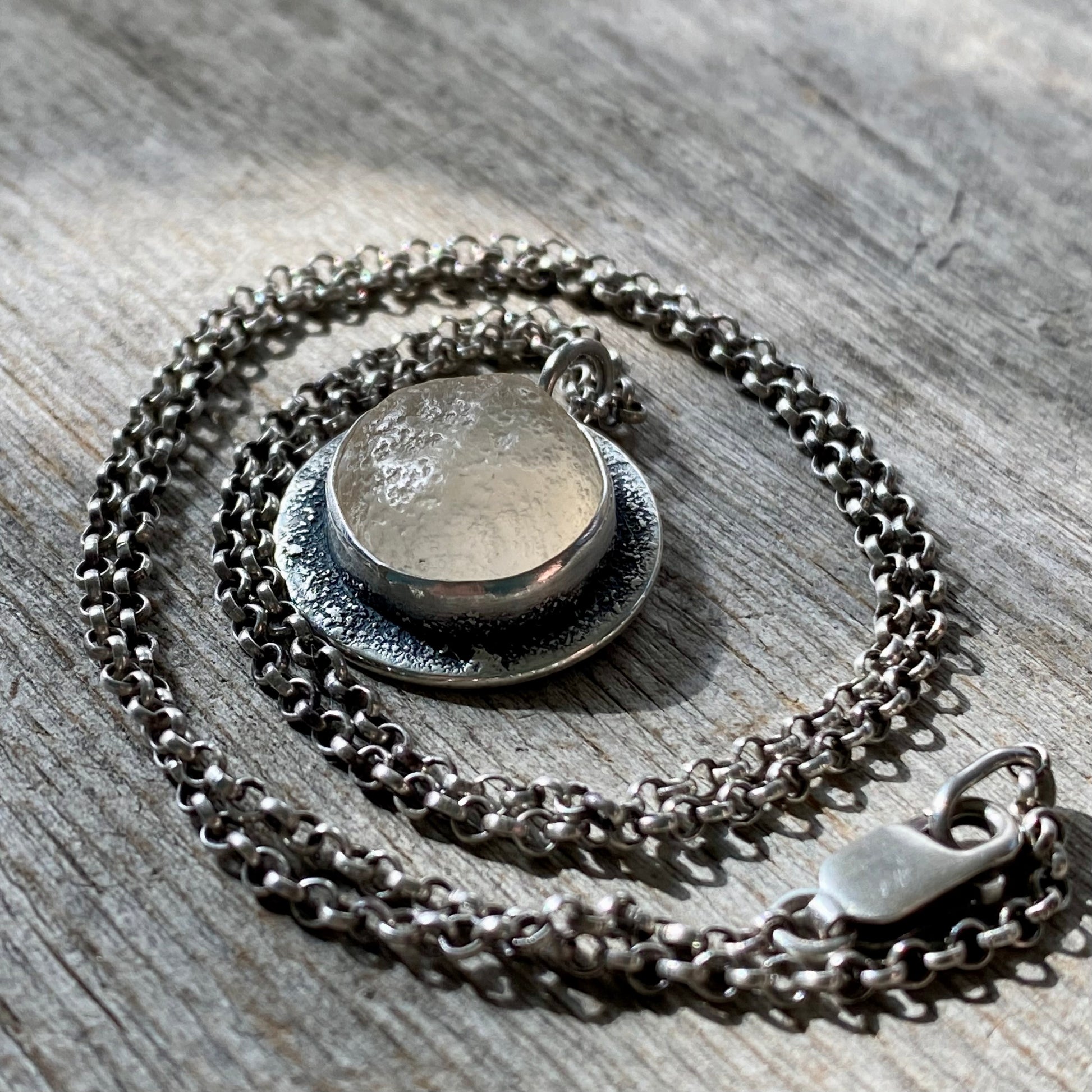 This pendant features a beautifully glowing Pacific Northwest ocean tumbled agate; wear it to keep you closer to the sea.