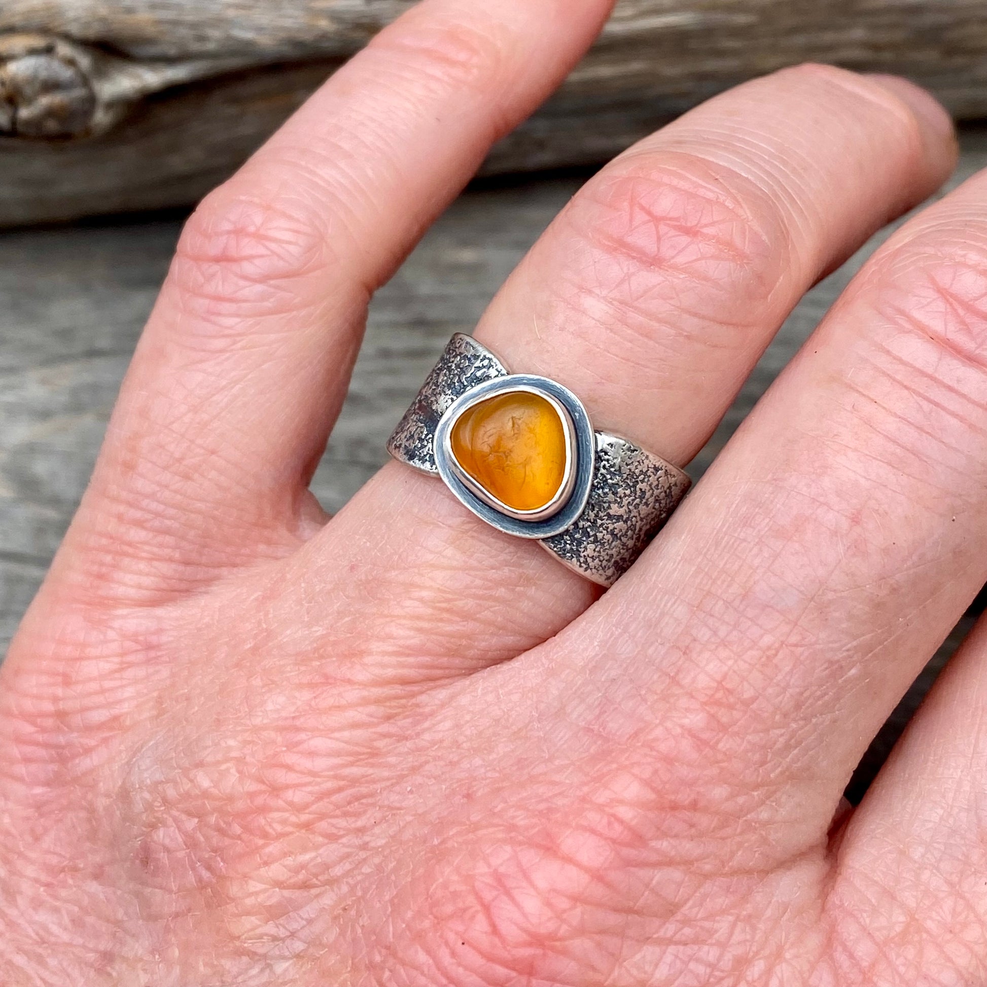 Oregon Coast Ocean Tumbled Agate Ring (size 6)