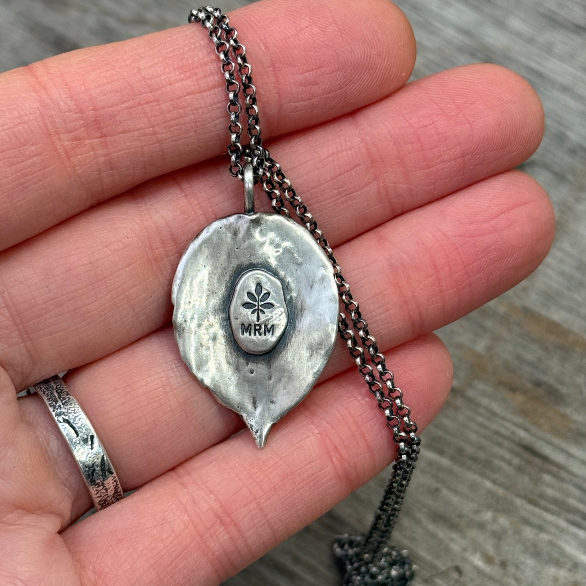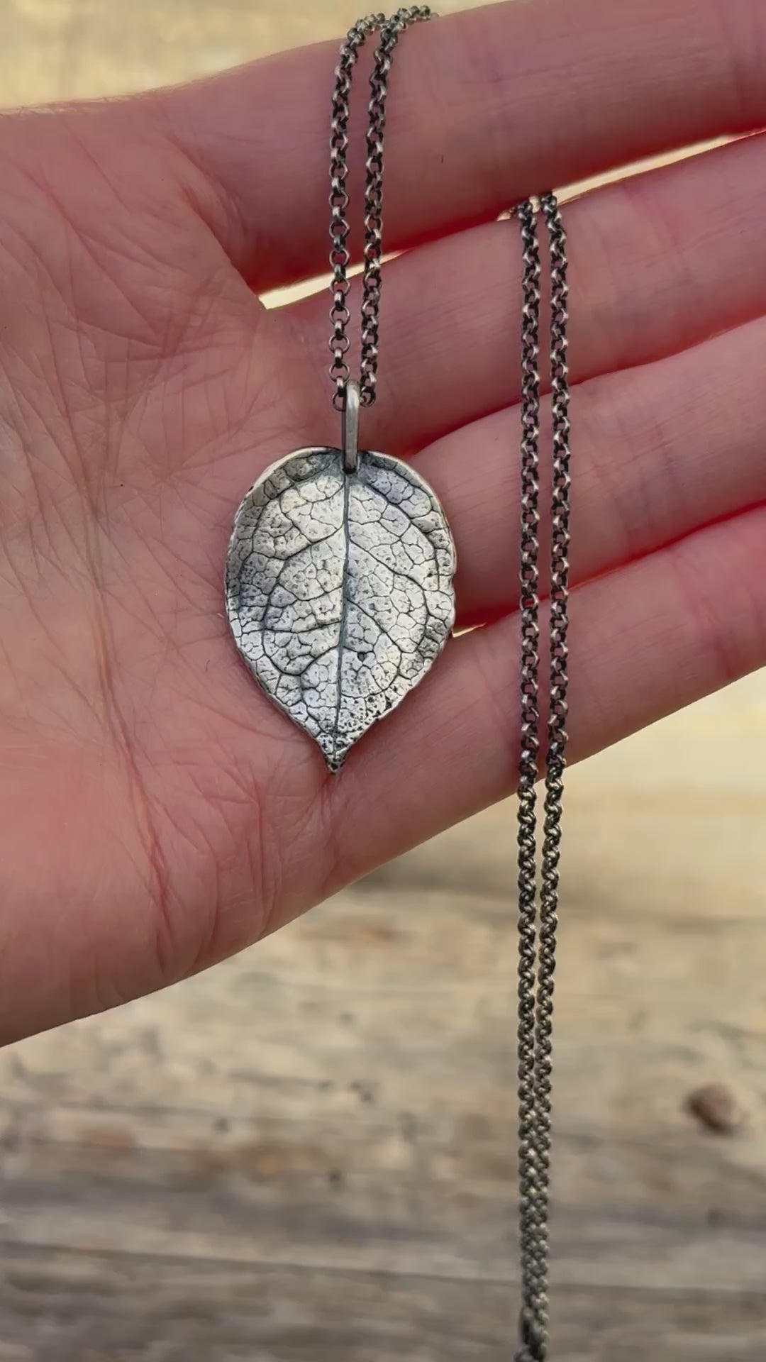 Completely made by me, this Oregon Salal leaf was collected along my favorite coastal Oregon trail and I transformed it into fine silver to last a lifetime.