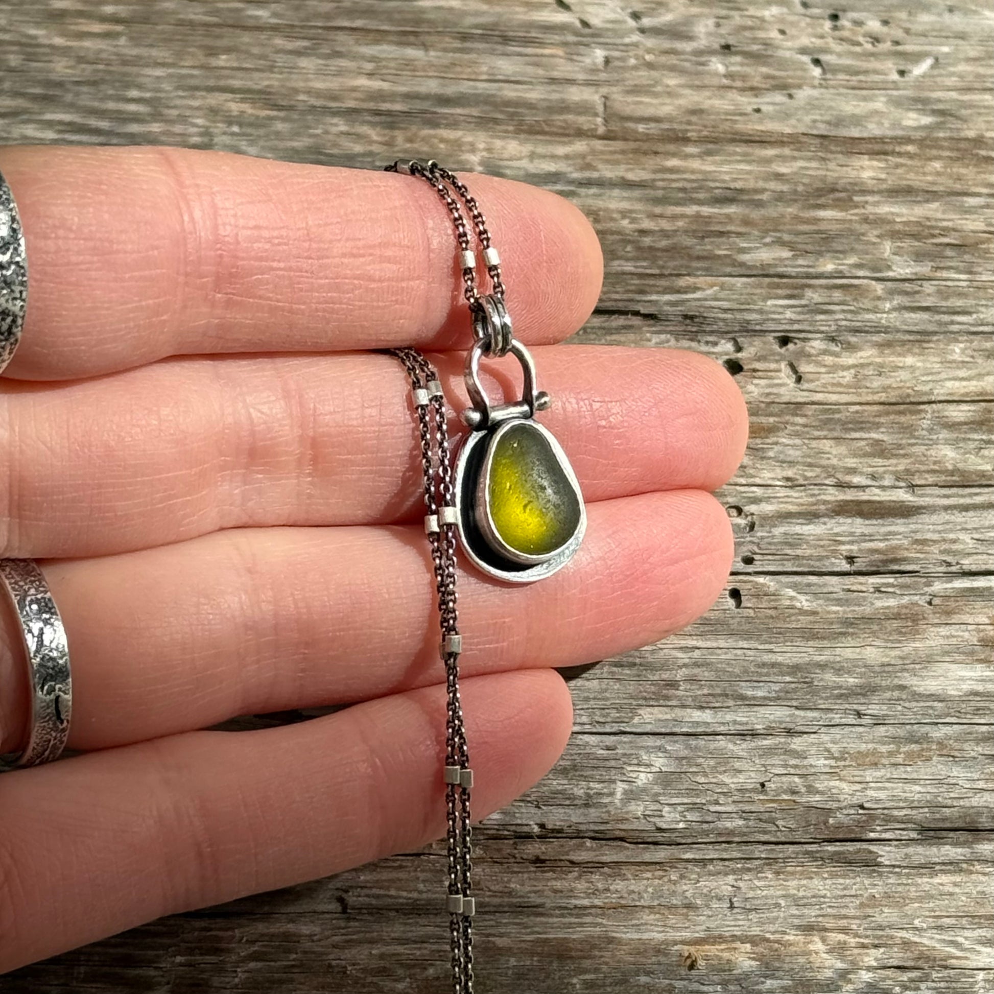 Oregon Lady Fern Pendant with Olive Green Sea Glass (small)