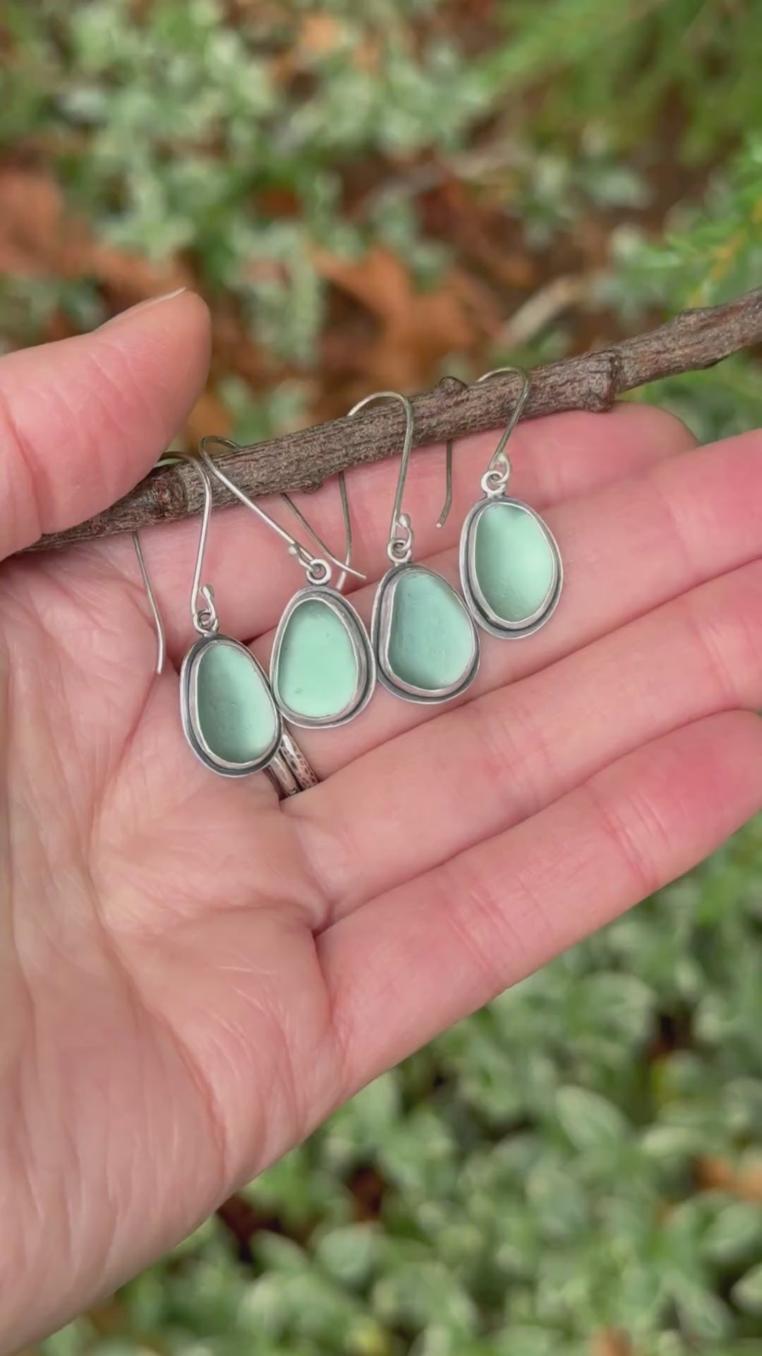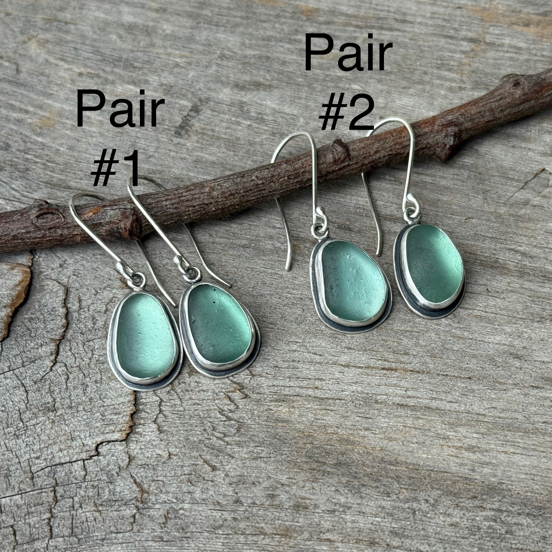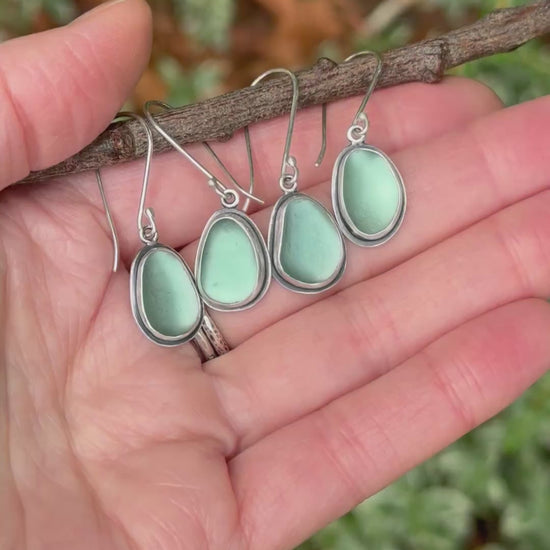 This pair has a small visible air bubble trapped in the sea glass, making it extra special.