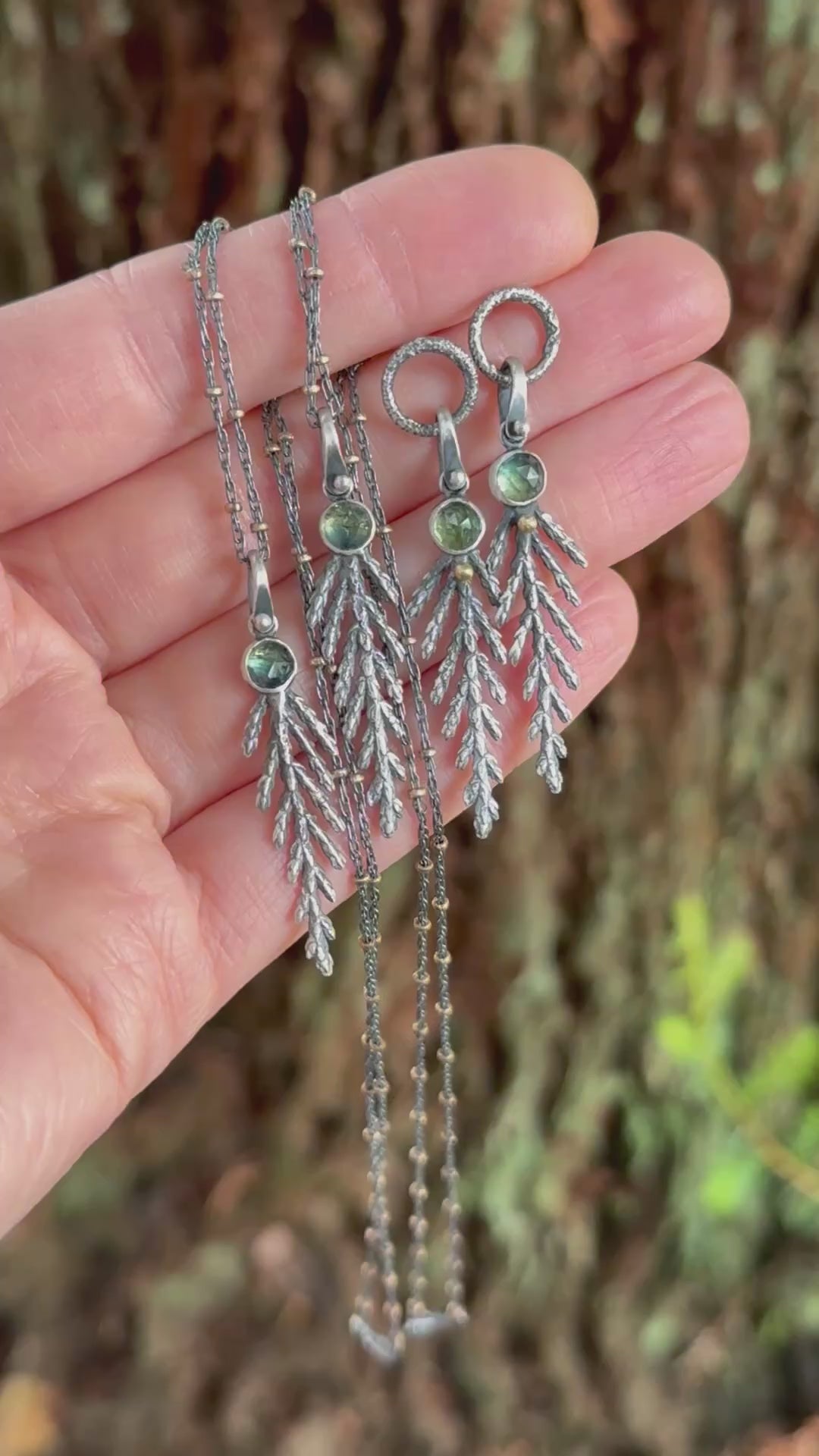 Handcrafted in sterling, fine silver, and solid 18k gold, these earrings are a tribute to the Pacific Northwest; the rugged coastline, the towering cedars, and the endless greens that come alive after the rain.