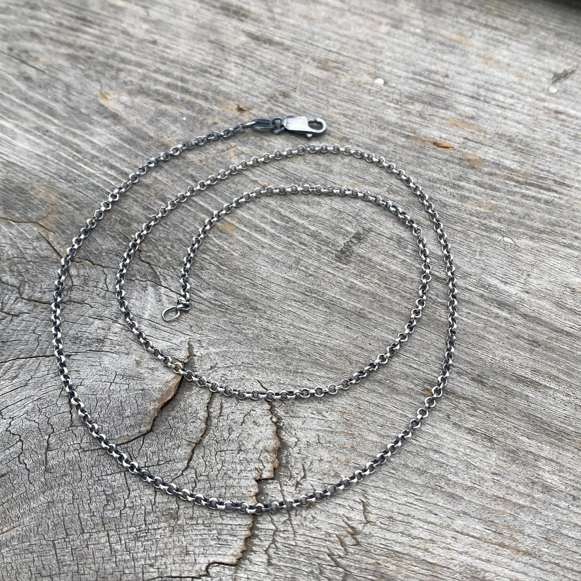 This solid sterling silver rolo chain is a great medium weight chain. It can be purchased in any length and is made to your requested length at the time of your order.