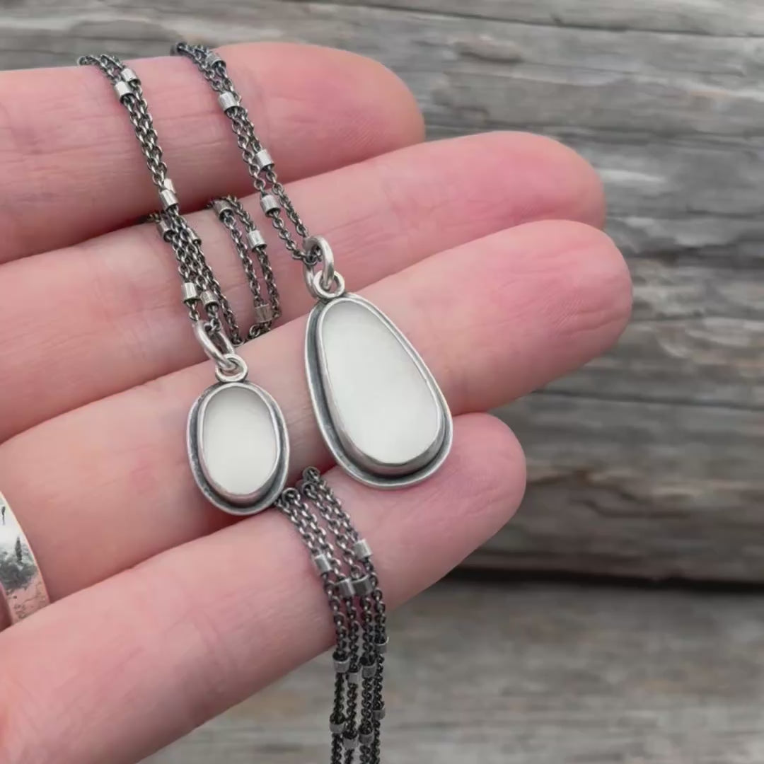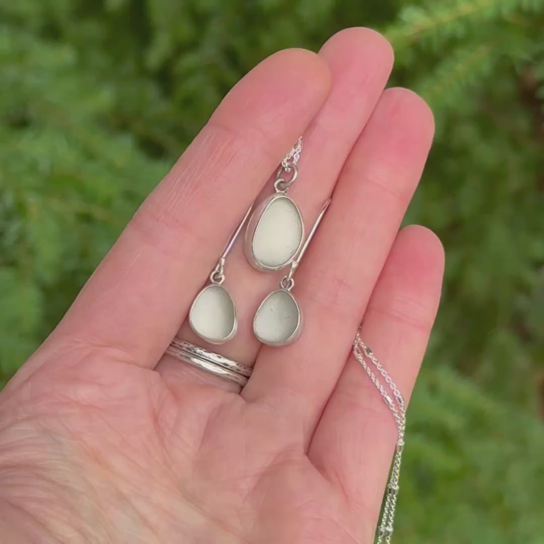 These elegant winter white pendants features genuine white Vancouver Island sea glass found by me on my beach combing adventures.